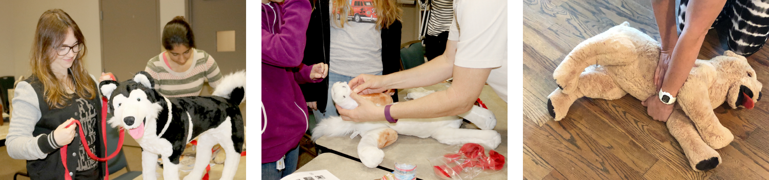 Hands on learning is important as it develops the necessary muscle memory to kick in during emergency situations. The class utilizes demo dogs so that you feel comfortable with positioning of your body and have the confidence of retaining the information.